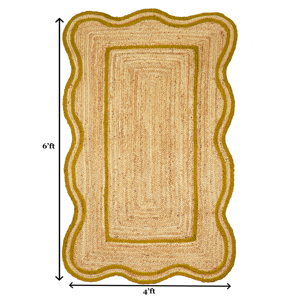 Yellow Bordered Scalloped Jute Area Rug Natural Fiber Rug